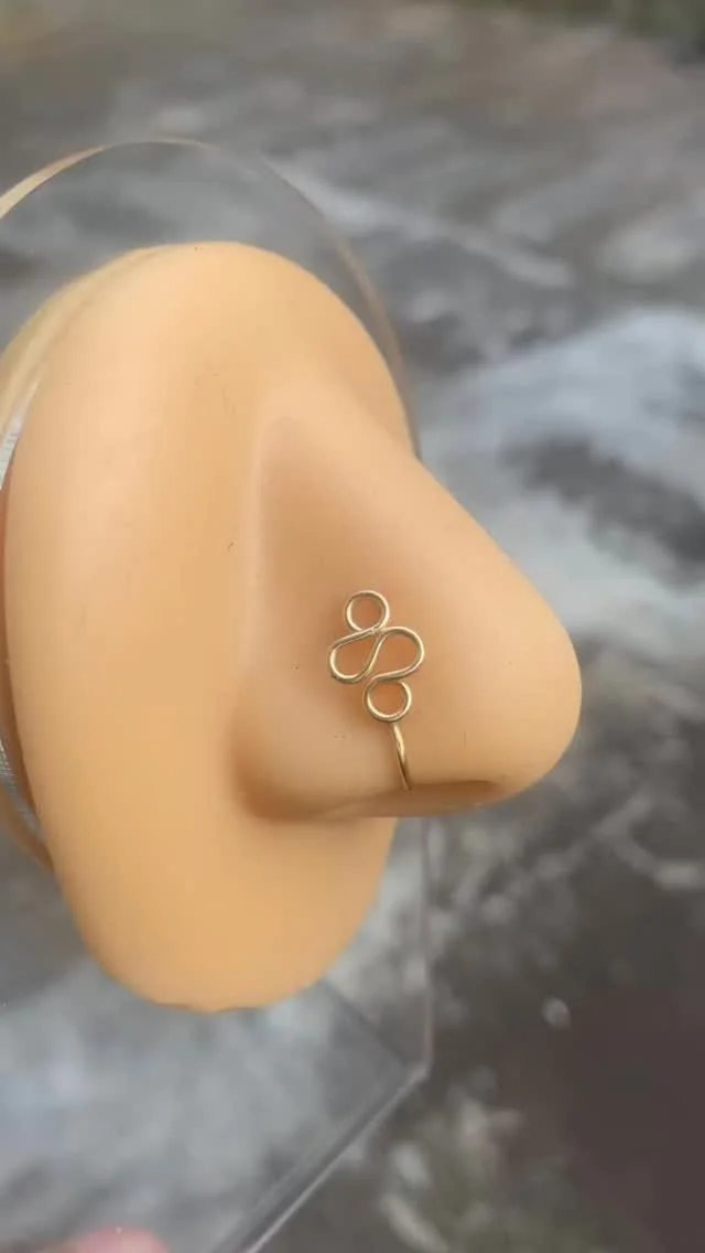 Delicately crafted from 20-gauge tarnish‑resistant plated wire, this faux nose cuff offers the look of a piercing without the commitment. Lightweight and comfortable, its slim profile hugs the nostril for a subtle, polished finish that suits everyday wear or special occasions.
