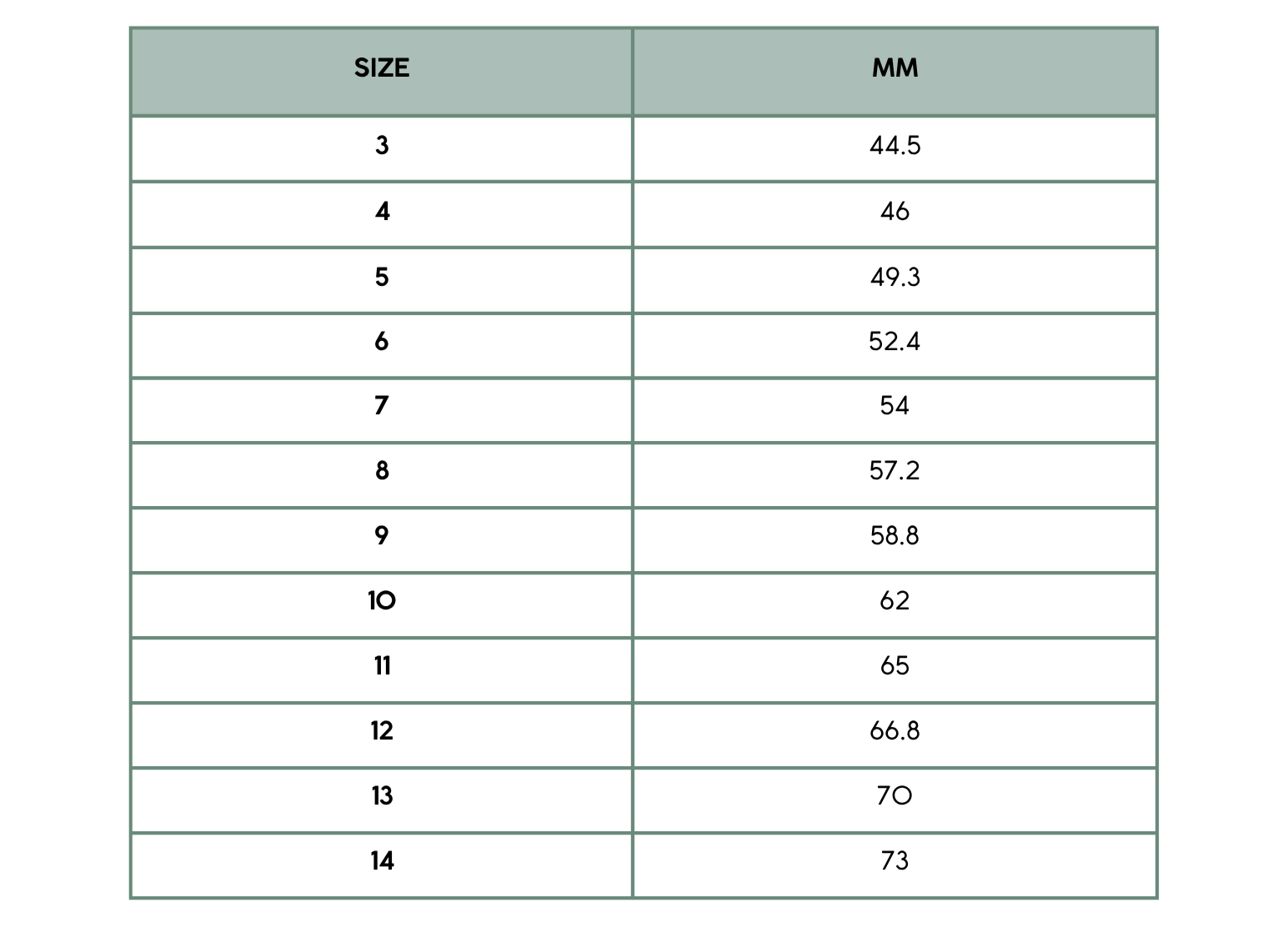 Ring Size Chart